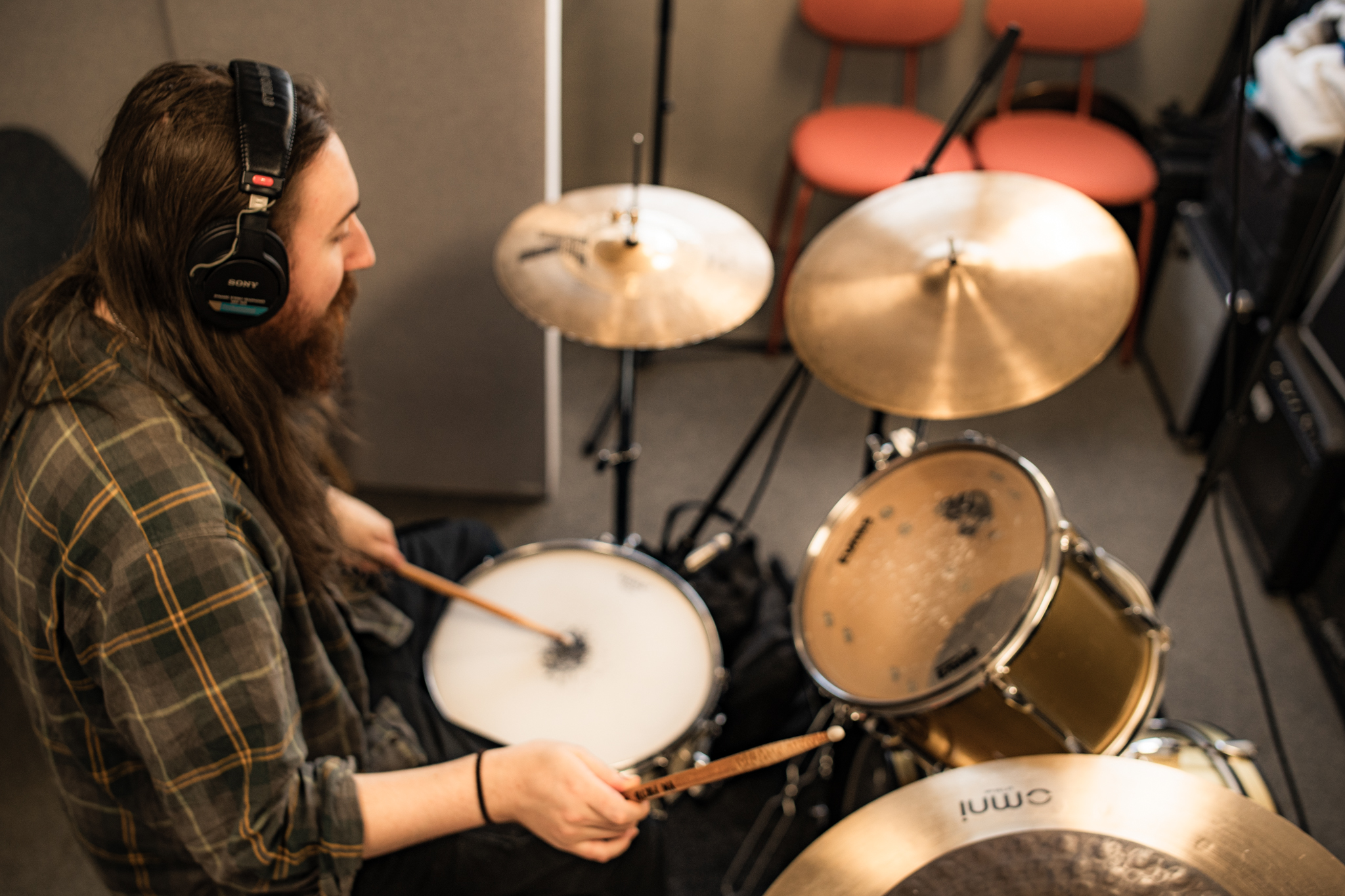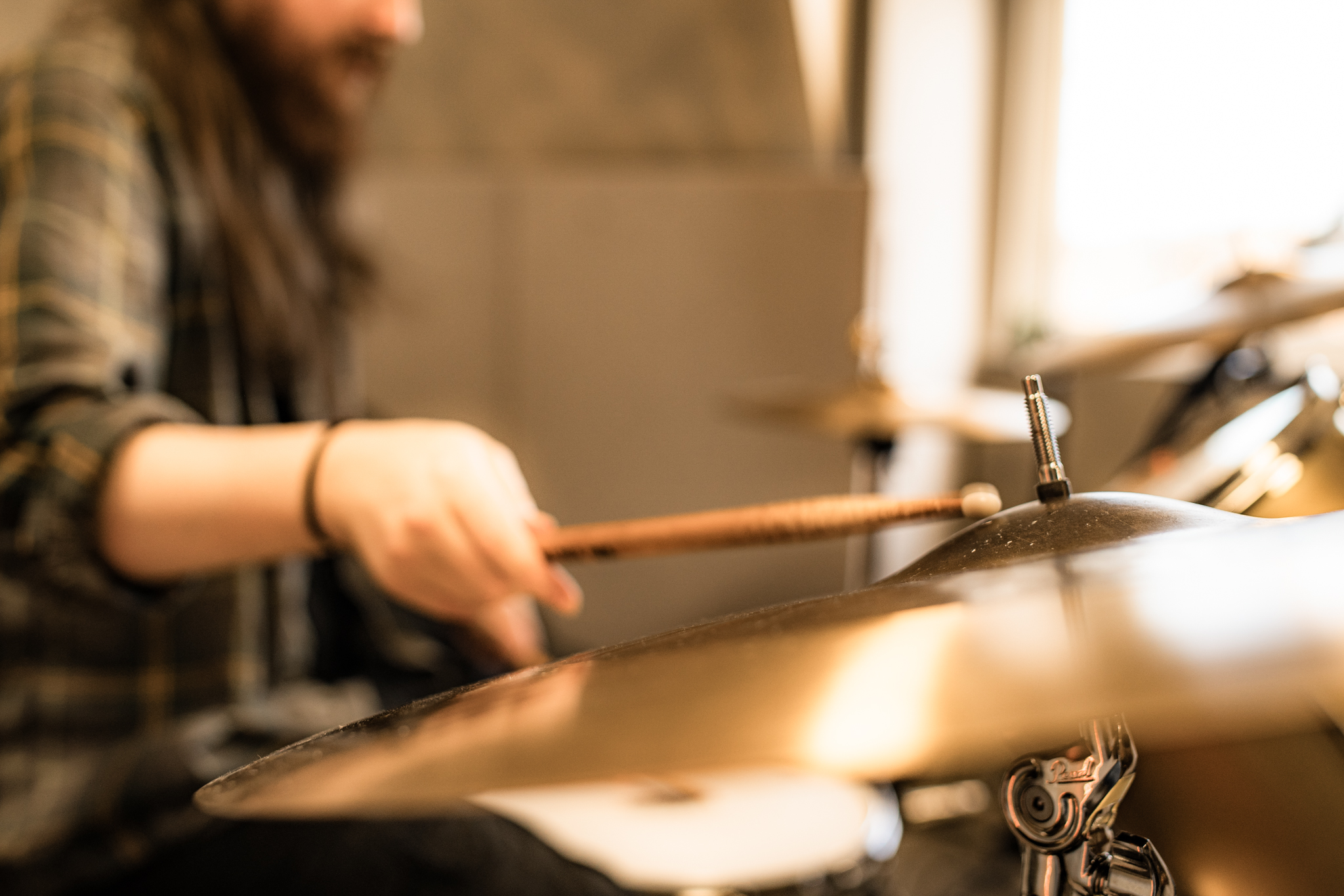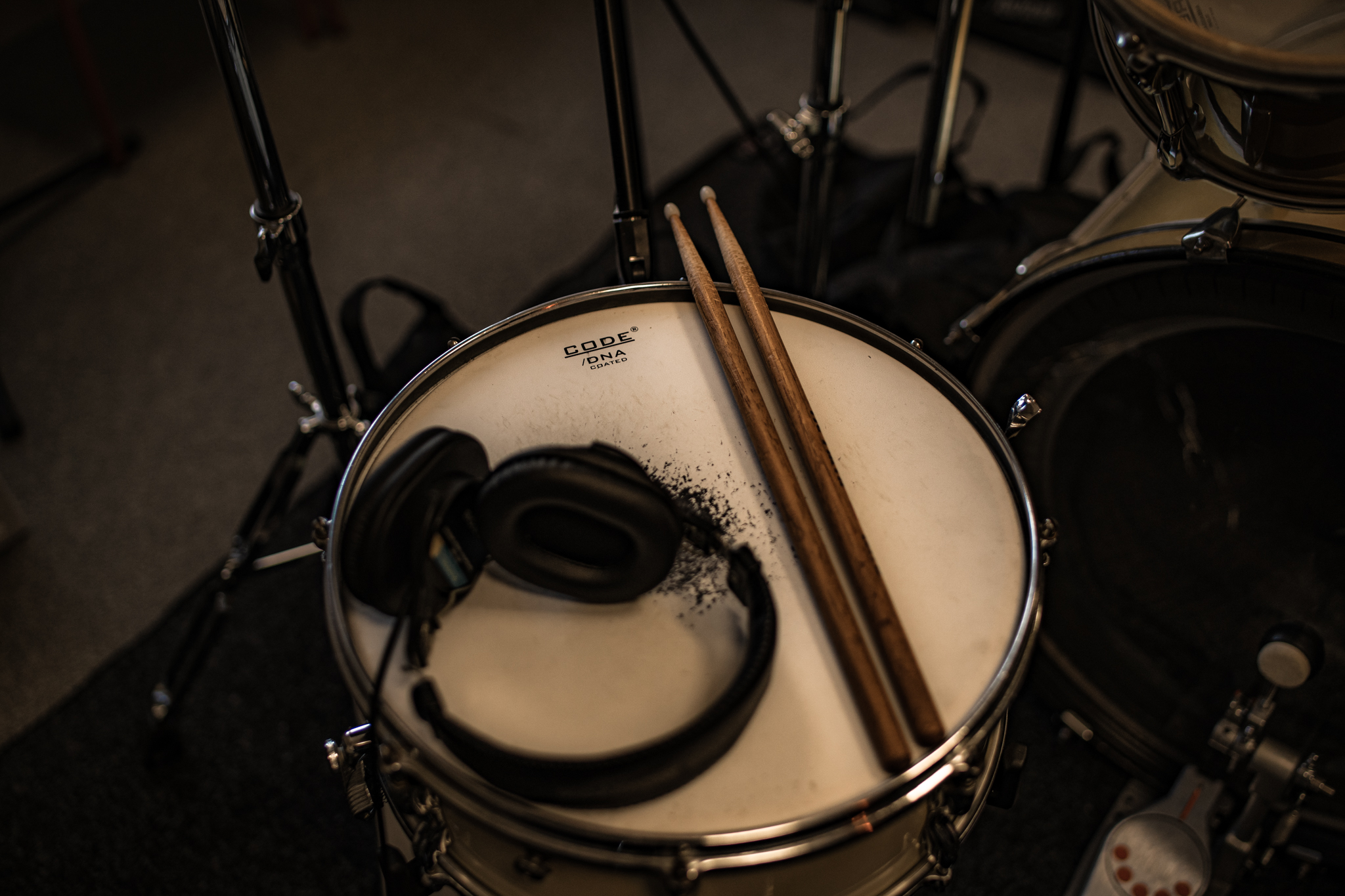 - A vintage Pearl drum kit for practice or recording